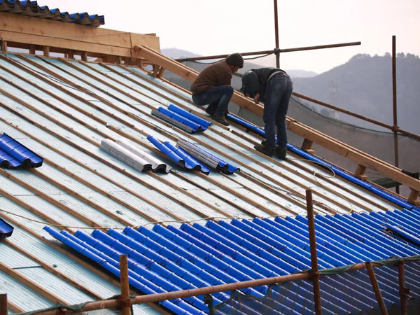 古文殊寺東西廂房的藍色琉璃瓦片,與大殿金瓦采用同樣的特殊工藝,鋪設過程細致、復雜,要對瓦片進行三次以上的打磨上色,令瓦片可以更長久的保持亮澤。